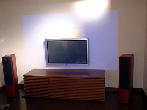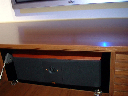 左側とセンター部分はメッシュになっていてセンタースピーカーといずれはウーハーを収納するようになっています。
